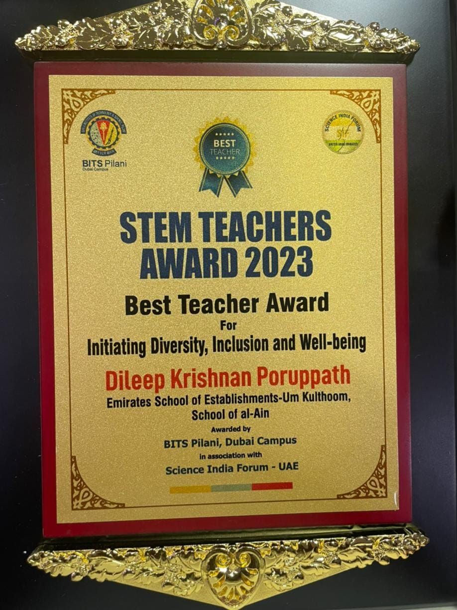 Recieved " Best STEM Teacher Award 2023 " from BITS Pilani Dubai Campus & Science India Forum UAE