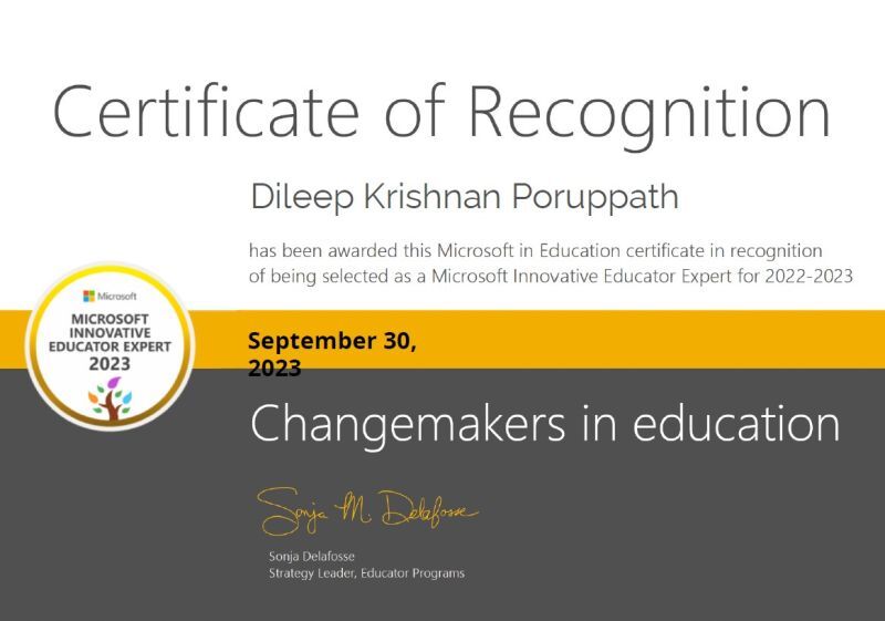 Selected as " Microsoft Innovative Educator Expert " ( MIE Expert) by Microsoft Education