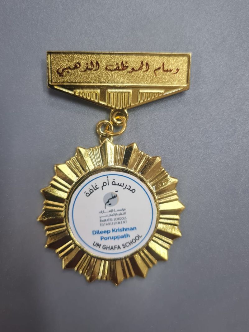 Recieved " Golden Teacher Badge " From Dr. Adel Ahmed Salem Ahmed Alobeidli, Principal Um Ghafa School for the effective contribution in the school activities in the year 2023-24_ Ministry of Education UAE
